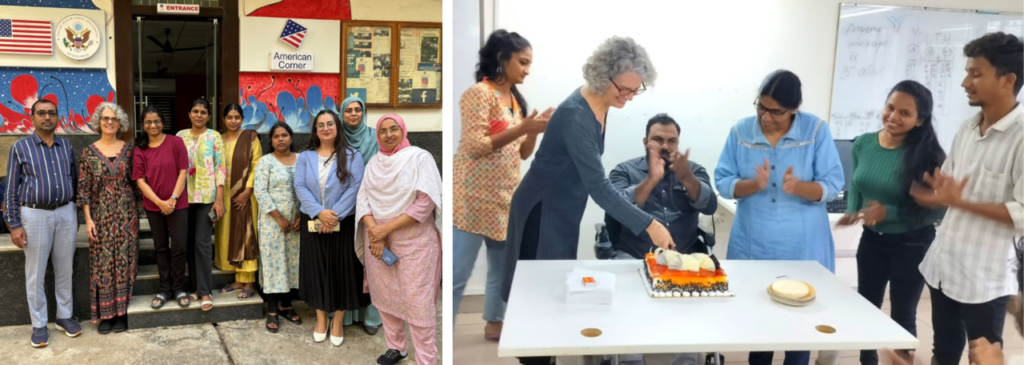 Six months later, Grindell returned to India for two weeks of workshops for staff members from different institutions and organizations. Grindell’s trainings focused on ways to implement and adapt the curriculum she’d created, with an emphasis on differentiated instruction. “In our discussions, we all learned about each of the participants’ jobs and student populations,” Grindell said. “Their students’ experiences with issues such as economic hardships or physical challenges were such that the ways of teaching them varied greatly.” Wrapping up her project, Grindell visited one of the learning sites – a job center for people with disabilities – and as an honored guest on the day of the organization’s anniversary, she was asked to cut the celebratory cake!