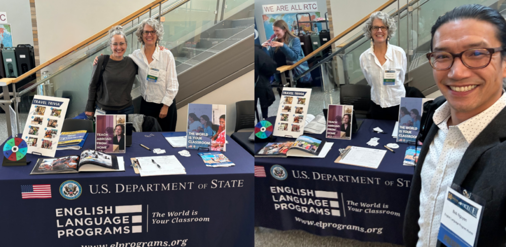 Representing the program at the 2024 WAESOL conference in Seattle, Washington, Grindell met program alumni and prospective applicants at the booth and shared her experiences in a recruitment presentation