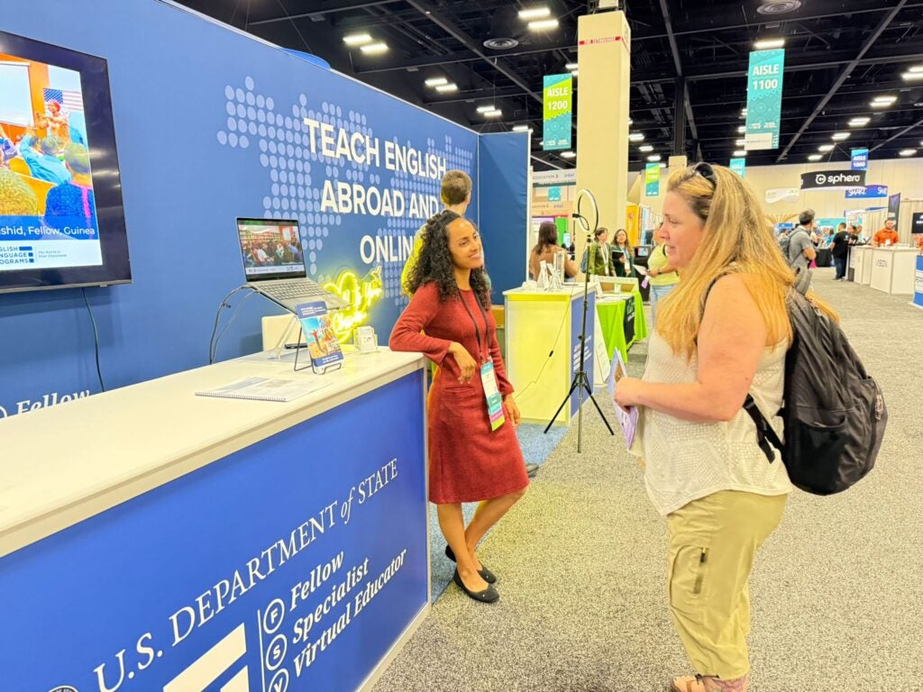 The group then traveled with the English Language Programs and FHI 360 teams—who partnered to organize the exchange—to San Antonio to attend the ISTELive 25 + ASCD Annual Conference, one of the largest and most influential educational technology gatherings in the world. The two events, together, drew more than 17,000 educators. The expo hall buzzed with energy, featuring nearly 500 exhibitors ranging from global education companies to innovative startups. Attendees explored towering booths packed with interactive displays, robotics demonstrations, and the latest edtech tools. Stages throughout the hall hosted live presentations and product showcases, while hands-on zones invited educators to test new technologies, experiment with gamified learning platforms, and imagine fresh possibilities for their classrooms. The space felt less like a traditional exhibit floor and more like an immersive learning studio of ideas, innovation, and collaboration. For the first time, English Language Programs hosted a booth at ISTE—spotlighting how edtech intersects with international education and proudly bringing the “I” to ISTE. Staff connected with educators to share opportunities for teaching English abroad and online.