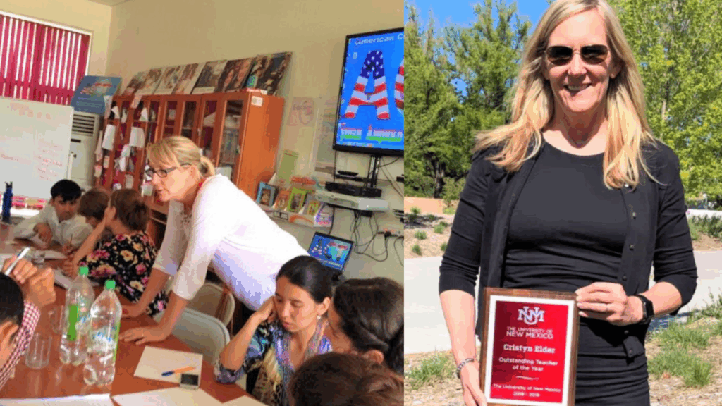 Cristyn Elder (New Mexico) – New Mexico educator Dr. Cristyn Elder is an associate professor of rhetoric and writing at the University of New Mexico, where she collaborates with faculty across disciplines to strengthen writing instruction and support student success. With a PhD in Rhetoric and Composition and an MA in TESOL, she specializes in teacher training, curriculum development, and writing program administration. Elder has taught and trained educators worldwide as an English Language Fellow in Guatemala and as an English Language Specialist in Tajikistan, Panama, El Salvador, Brazil, and Türkiye. A longtime English Language Programs alumna and former Alumni Ambassador, she brings extensive global experience to her work at UNM. Elder’s teaching has been recognized with UNM’s Outstanding Teacher of the Year Award, reflecting her deep commitment to multilingual writers and writing‑across‑the‑curriculum initiatives.